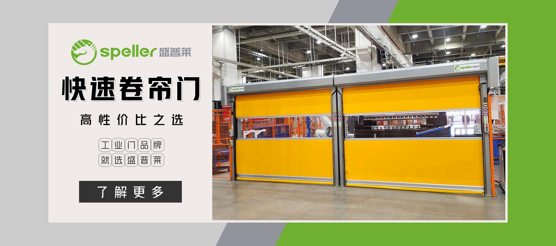 ???? ? 盛普萊門業(yè)制造(江蘇)有限公司,專為研發(fā)、生產(chǎn)、銷售普及型工業(yè)門而創(chuàng)立,核心團隊由行業(yè)中富有經(jīng)驗的技術(shù)研發(fā),生產(chǎn)制造,營銷管理等專業(yè)人才組成。立志將“盛普萊”品牌成為高性價比、普及型工業(yè)門的行業(yè)品牌代名詞。專注于快速卷簾門、工業(yè)提升門、硬質(zhì)快速門、潔凈室快速門、堆積式快速門、保溫快速門、物流裝卸貨平臺、工業(yè)門封等普及型工業(yè)門系列近70款產(chǎn)品的技術(shù)開發(fā)、設(shè)計制造、銷售安裝以及售后服務(wù),按照行業(yè)標(biāo)準(zhǔn)持續(xù)技術(shù)創(chuàng)新,產(chǎn)品擁有多項核心技術(shù)與權(quán)威認證。市場立足蘇州,緊密聯(lián)動江、浙、滬長三角地區(qū),銷售網(wǎng)絡(luò)遍布全國幾十個主要工業(yè)城市,在全國設(shè)立了近百個服務(wù)網(wǎng)點,有效的服務(wù)半徑內(nèi),實現(xiàn)7×12小時全時段便捷化服務(wù)。